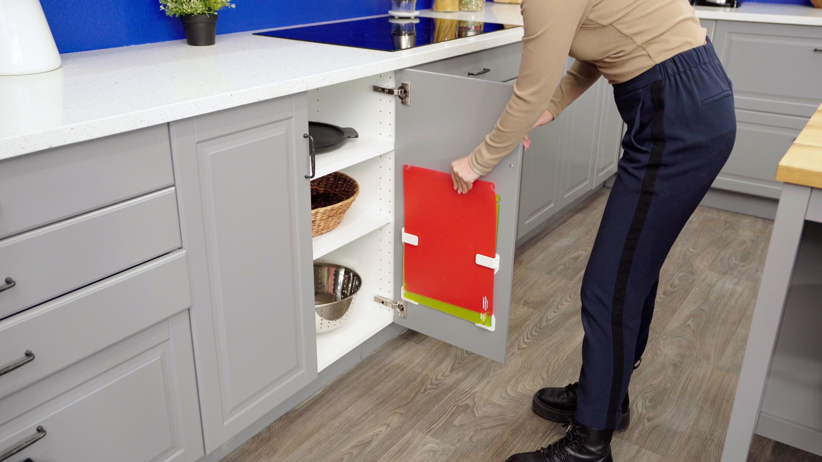 Green, Blue, Red, and Yellow. Color coordinate to make safe food prep a breeze.