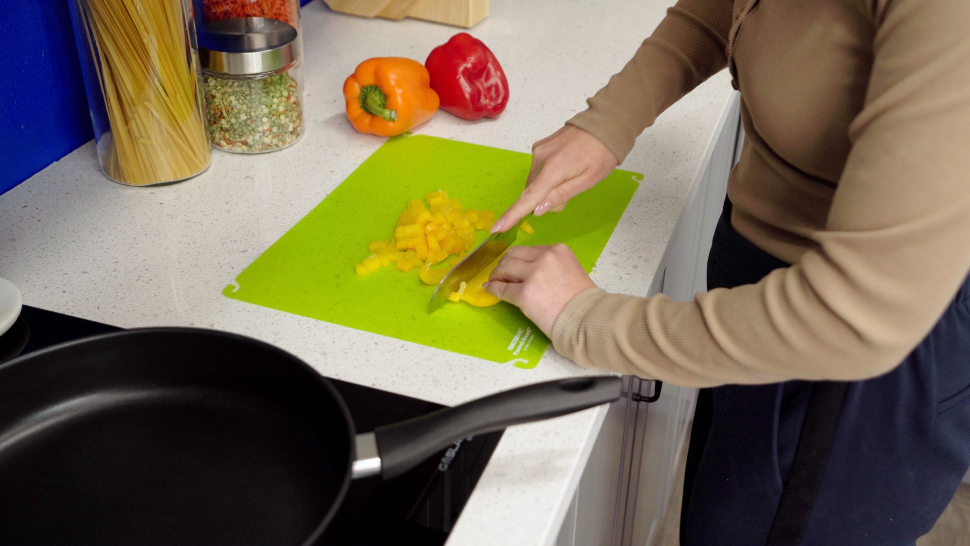 - Polypropylene hybrid blend, thicker than most flexible cutting boards, offering a longer life